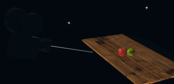 카메라에서 쏜 광선은 장면 속 물체에 닿거나, 계속 진행해 화면 밖으로 사라집니다.